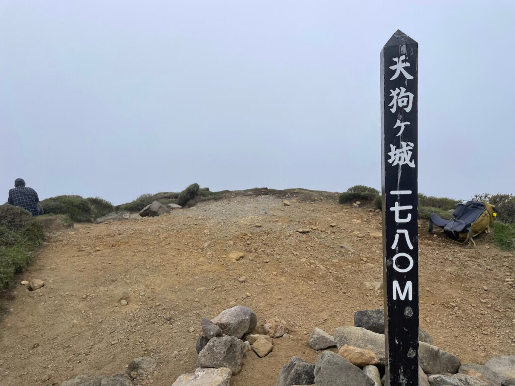 4座目、天狗ヶ城ゲット!ガスガスで何も見えないので即下山。