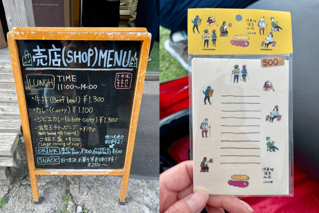 11:00〜14:00はランチもやっていて、牛丼やカレーなどをいただくことができます。下山後に外のテーブルで生ビールを飲んでいる方がいて、とても幸せそうでした!